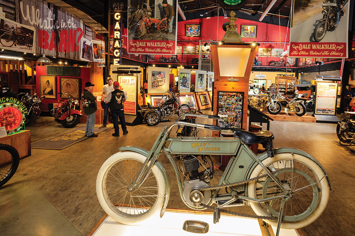 “At the time he owned his Harley-Davidson dealership, there weren’t really motorcycle museums,” says his son, Matt Walksler, who’s now the museum’s curator and executive director. “Initially, he opened the museum [around 1987] as an attraction to his Harley-Davidson dealership, a way to get visitors and customers.” His zest for those old bikes eventually eclipsed his passion for selling new ones, so he began looking for a place where he could run a museum full-time.
