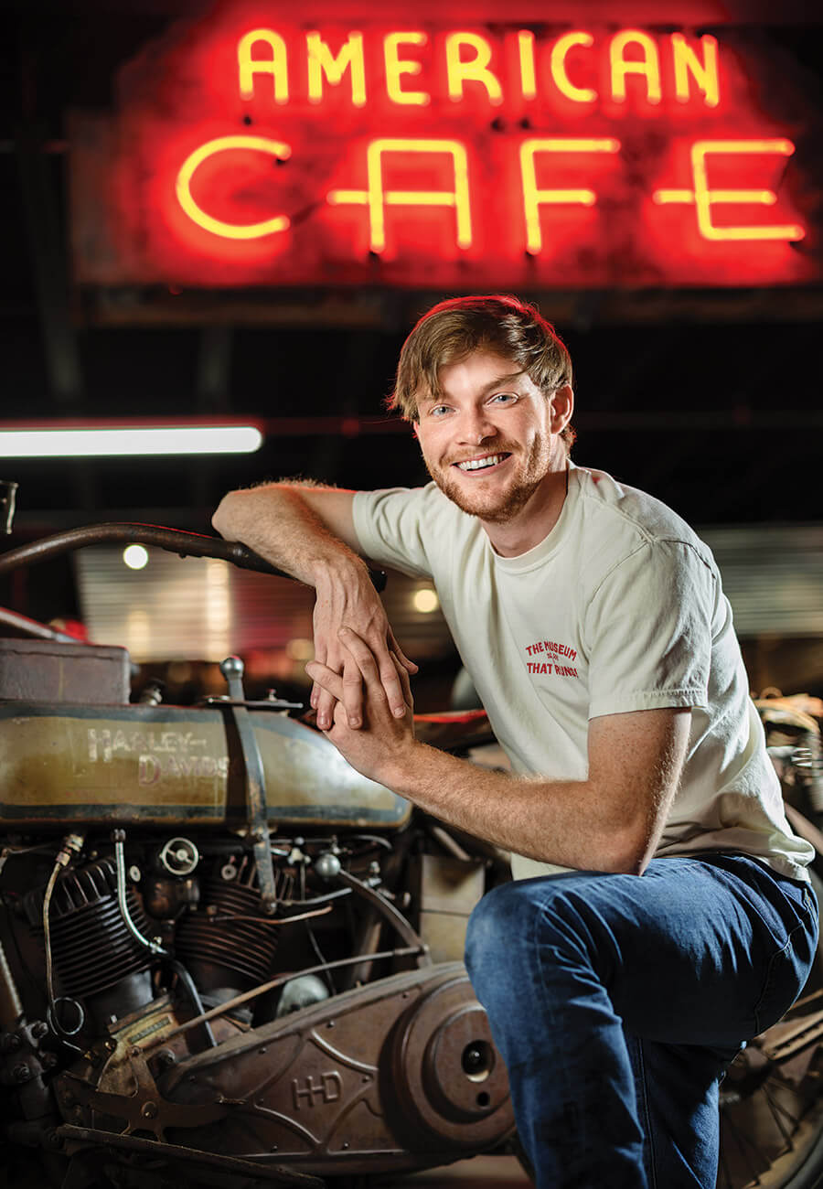 Jake Burks’s love of motorcycles makes him a natural museum guide. photograph by Jerry Wolford & Scott Muthersbaugh