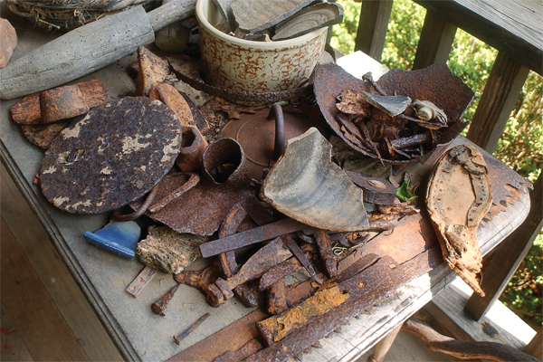 Objects found at Hart Square on the new site, suggesting an early homeplace. Bob found handmade brick, latches, hinges, shards, and tools, among numerous other items, some of which are on display in the Hart Square museum.