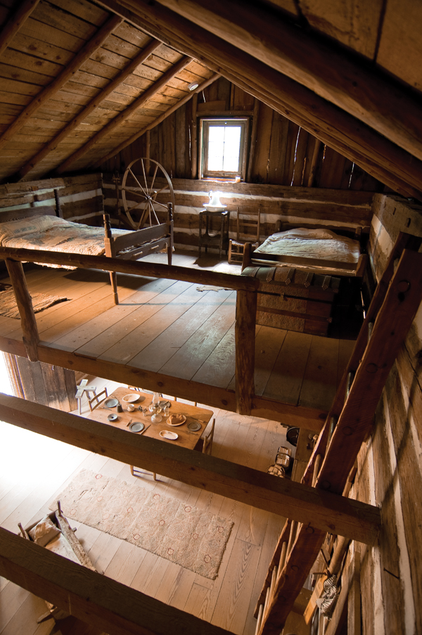 With two rope beds, loft of Hunsucker House. First floor viewable below.