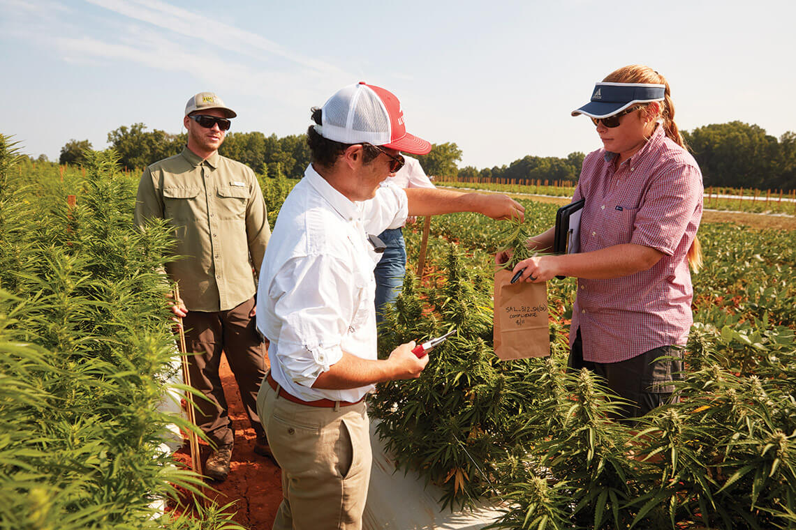 As an assistant professor of alternative crops and director of the new Hemp Research Consortium, David Suchoff investigates the possibilities and processes of farming hemp. At NC State’s Piedmont Research Station, students help Suchoff clip hemp samples for field testing. photograph by Jon Black & Joey Seawell