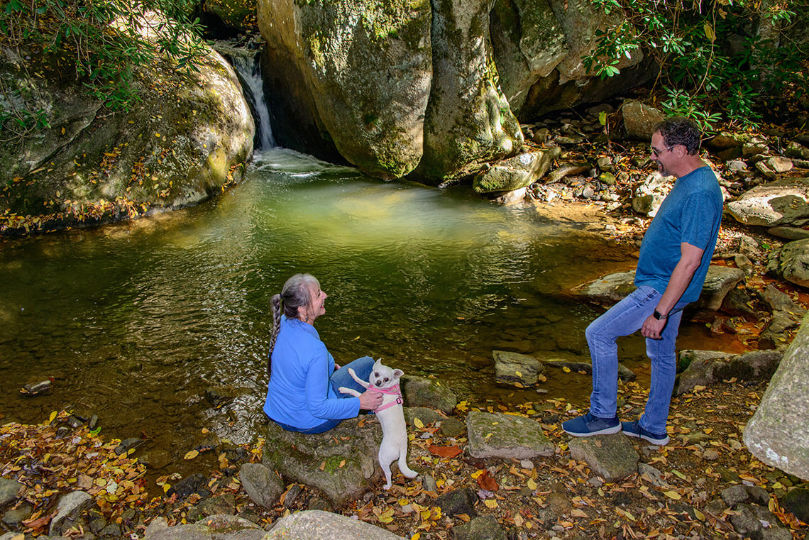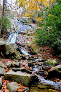 Watch your step and stay on the trail to help prevent impact on the surrounding environment — plus, the 1.5-mile (one way) trail is steep in places and peppered with roots and rocks. Once you reach the base of the falls, the large boulders that jut out into the creek are a perfect place to rest while you savor the sounds and sights of the falls.
