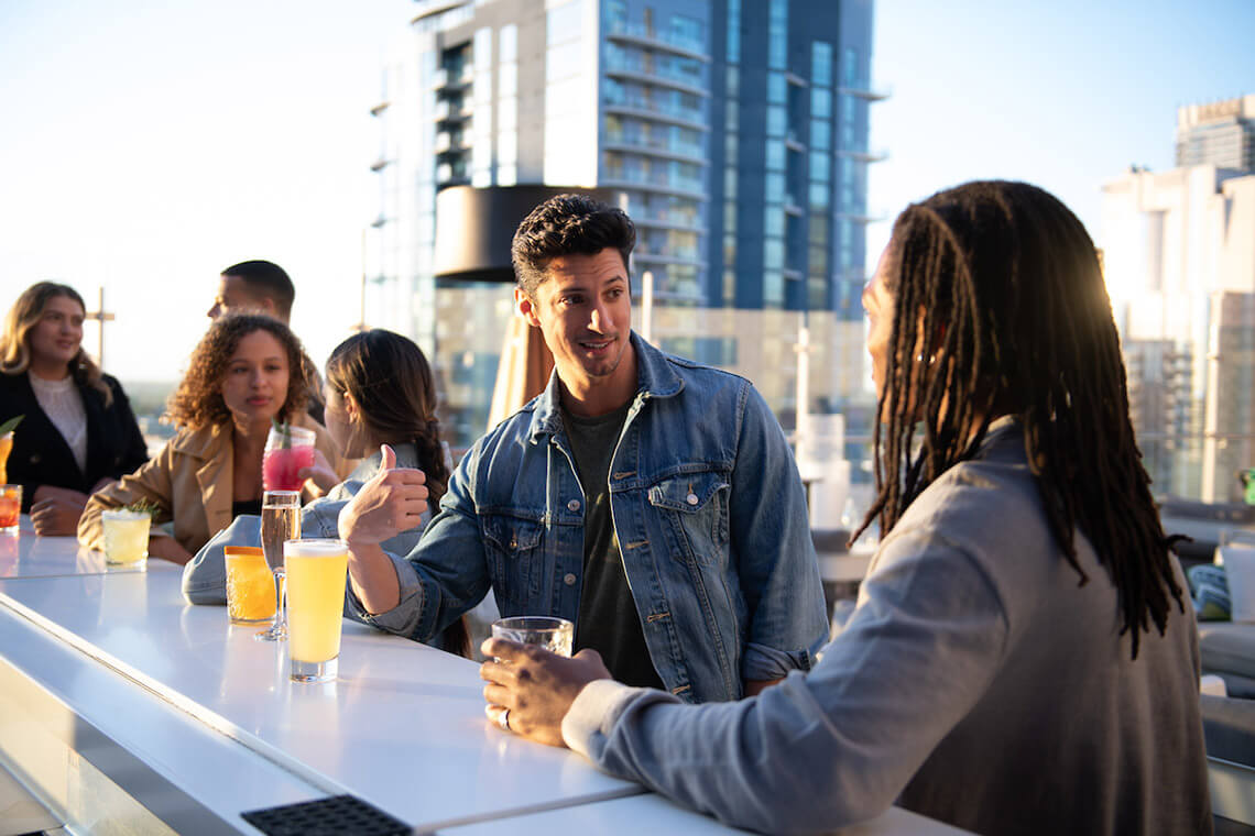 Raise your glass with a skyline view at Merchant & Trade in Uptown. Photography courtesy of Charlotte Regional Visitors Authority