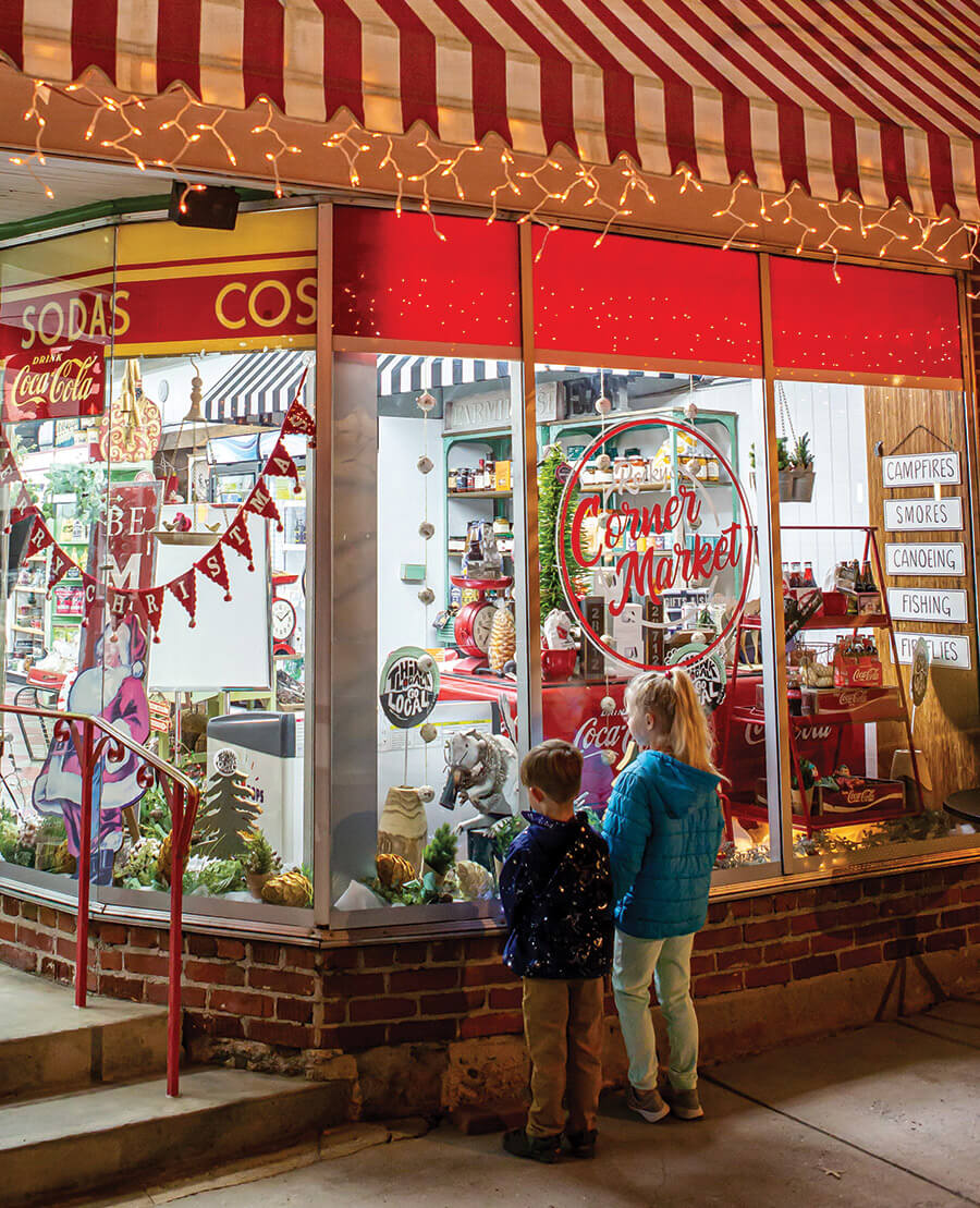 Downtown shops twinkle and glow during the holidays with window displays reminiscent of yuletide celebrations of the 1940s and ’50s.