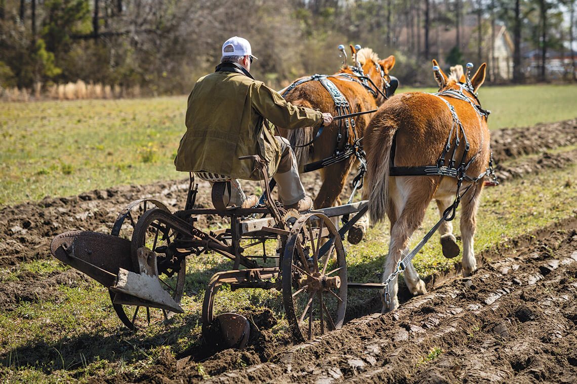 Plowing with Samson and Millie, the author got a glimpse of what life was like for the farmers — and mules — who helped build our state. photograph by Charles Harris