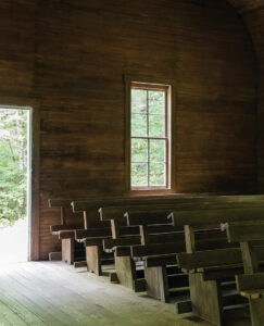 In every off-center doorframe or rock jutting from the foundation of an old church waits someone’s great-grandfather or great-great-grandmother, some life that strained to set the eaves just so. In these handmade places, we see not only individual lives but also communities of people who swung hammers after plowing fields and breaking beans. The men and women who found themselves making a life together along the same stream in a mountain valley had little choice but to come together. So they built brush arbors or piled into houses until, one day, they decided to pool their money, ride to the sawmill, and see about raising up a church.