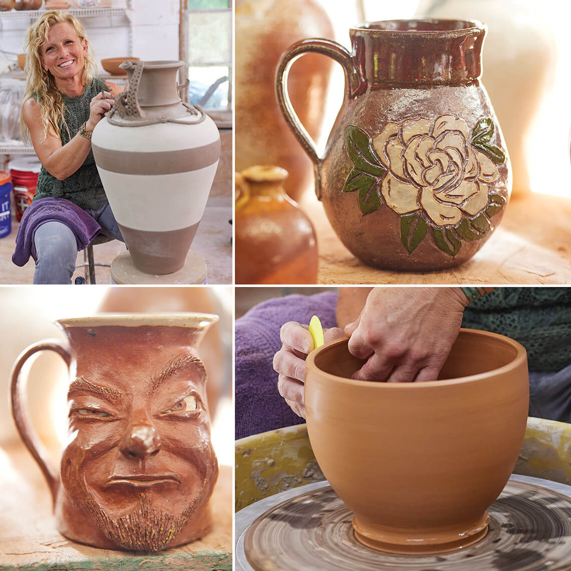 From rust-colored trails to carefully crafted mugs, Seagrove has earned a reputation for prized clay. For potter Cat Viera, her work with the moldable material evolves daily. Viera draws inspiration for her designs — created with freehand carvings, custom stamps, and layered glazes — from nature and her own life experiences. As an instructor, she emphasizes a balance of effort and ease that encourages her students to work through challenges, relinquish control, and, as she puts it, “let their personalities shine on the wheel.” — Cailyn Domecq