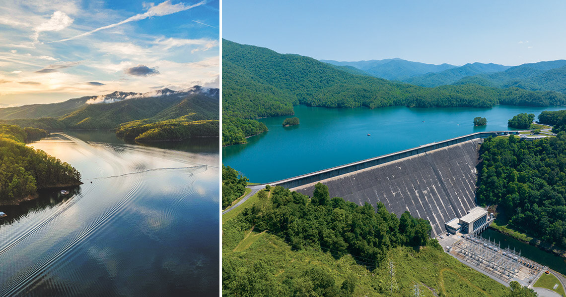 Towering 480 feet above the Little Tennessee River, Fontana Dam — the tallest in the eastern United States — was among a handful built in the mid-20th century to power factories throughout southern Appalachia. The dam took only two years to complete. photograph by Jonathan McRae; Courtesy of VisitNC.com