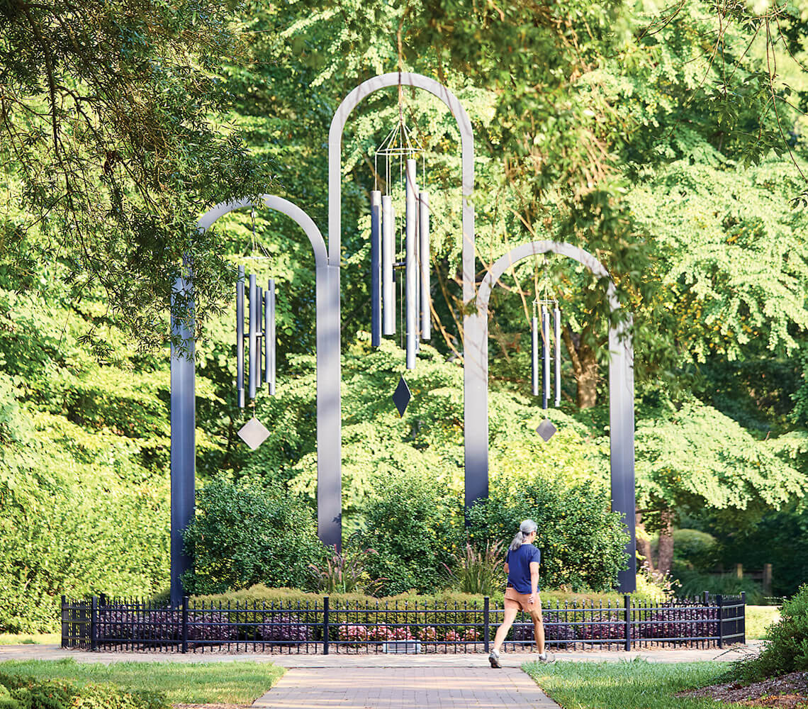 Planted among the trees at the Greensboro Arboretum, these wind chimes gently ring out as the breeze coaxes them to dance. Dr. Lawrence Hart, dean of UNC Greensboro’s School of Music from 1966 to 1980, dedicated his life to sharing song across Guilford County and beyond. Today, nature honors him as it plays its own tune.