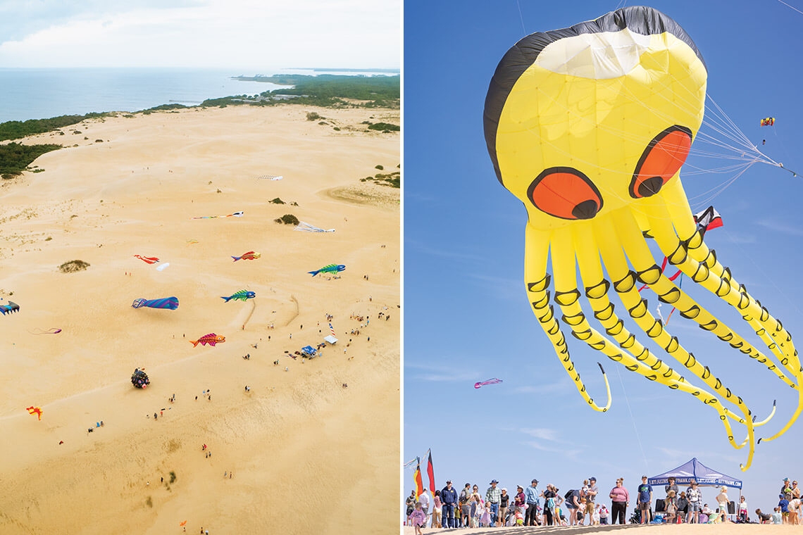 The end of summer blows in the annual Outer Banks Kite Festival, held on September 12 and 13 this year. Watch for larger-than-life kites like this behemoth octopus. photograph by Chris Hannant, Kerry J. Hackney