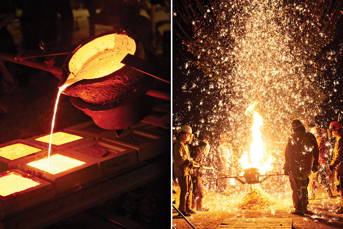 Pourmasters at the ninth annual event collect molten iron … <br><span class="photographer">photograph by Alex Boerner</span>