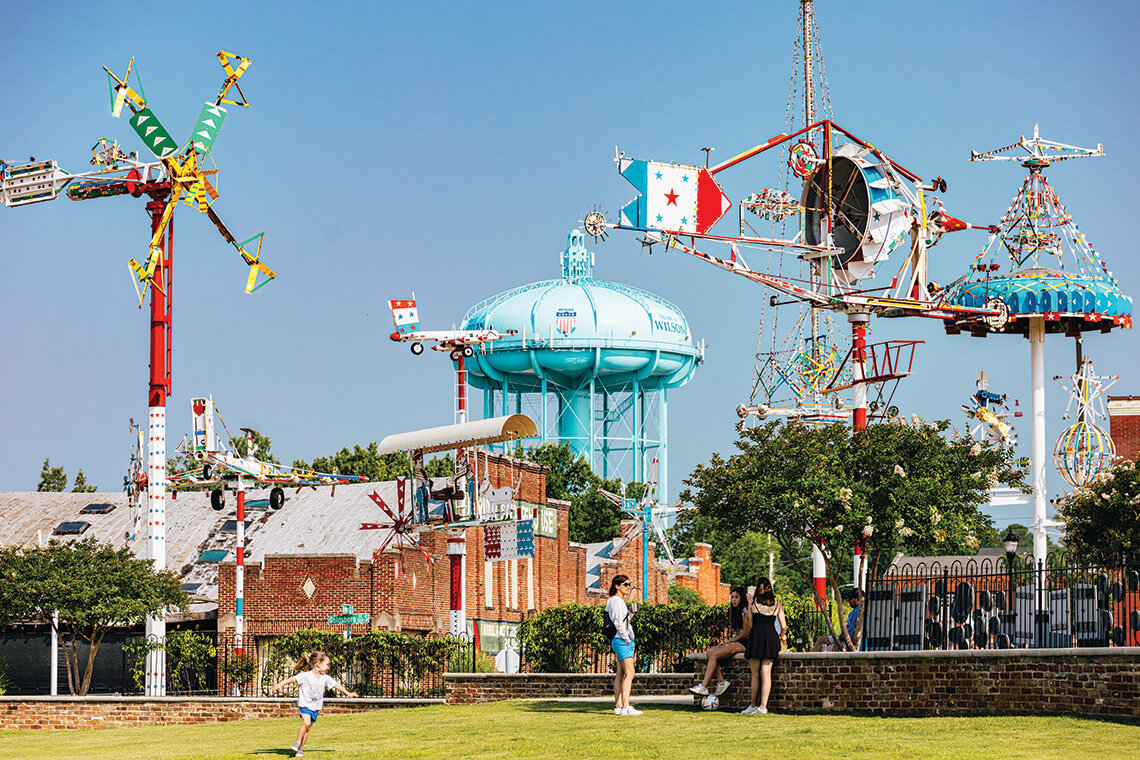 The late folk artist Vollis Simpson’s whimsical whirligigs squeak, clang, or clink depending on the wind. These iconic metal sculptures vary in design, from quirky airplanes to otherworldly structures with wildly spinning wheels. — Anna Grace Thrailkill