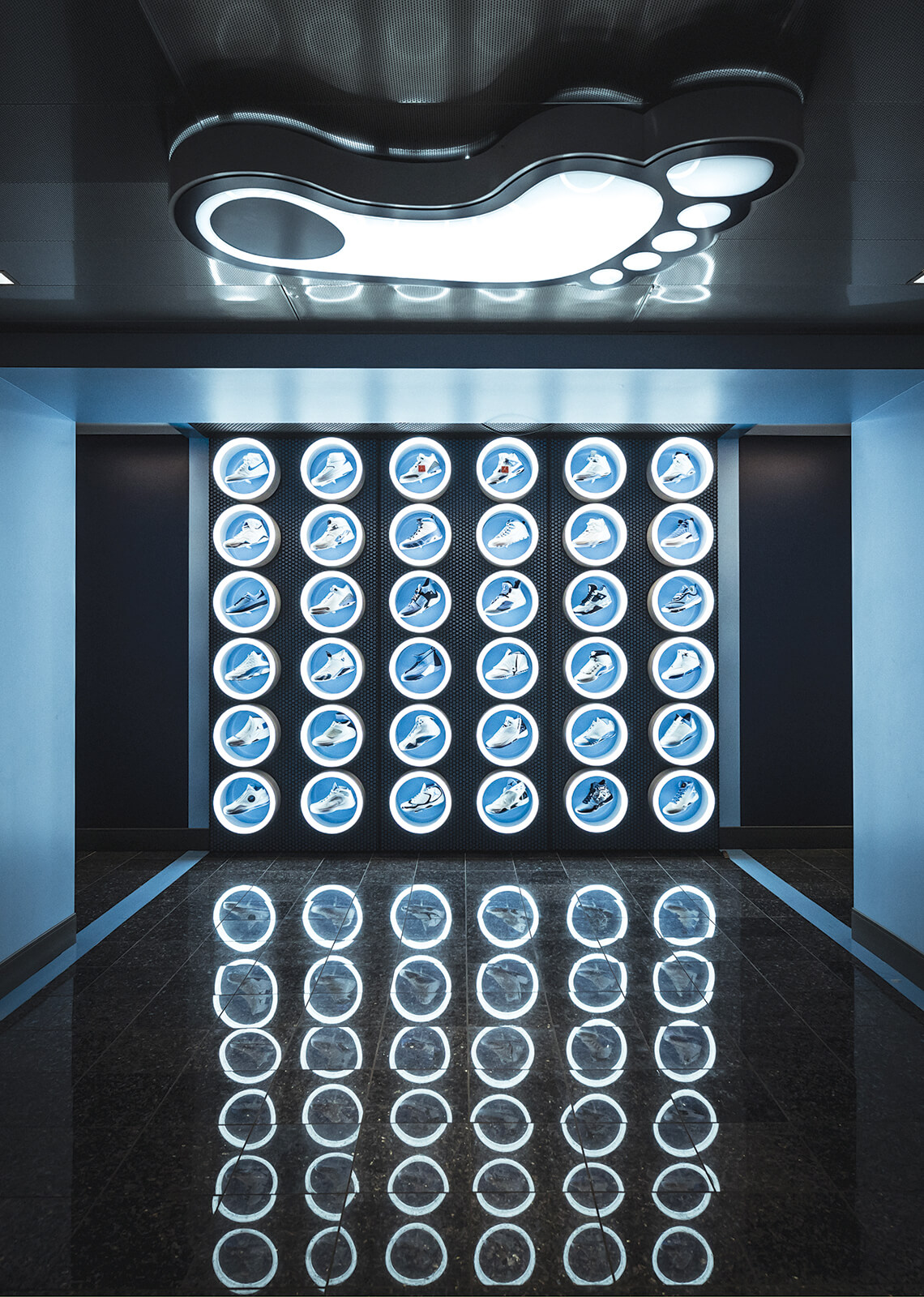 In 2016, the University of North Carolina at Chapel Hill unveiled its brand-new basketball locker room complex, named for the late Coach Bill Guthridge. The team had been in the same building for more than 30 years, says Steve Kirschner, a director for athletic communications, and it was time for some updates. Tucked between the training area and the weight room is something you won’t see on a public tour: A blank wall became a tribute to UNC’s most famous player, Michael Jordan, featuring every Air Jordan edition in Carolina blue. The wall of sneakers honors UNC’s ties with MJ and Nike — “something that no other school in the country has,” Kirschner says. It’s especially meaningful for the players, who grew up admiring Jordan and his namesake shoes — “and that connection deepened when they came to UNC.”