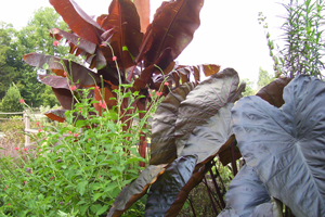 Dig and store bulbs and suckers of the tender, herbaceous perennials like alocasia and colaccasia. photograph by Toby Bost