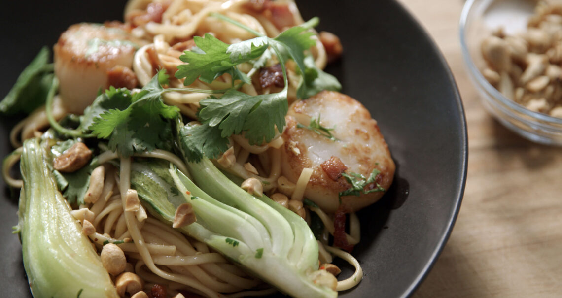 For the stir-fry: Rinse the scallops, set them on a paper towel to dry them off, and then season with salt.