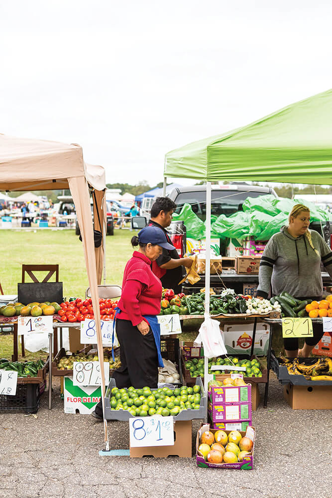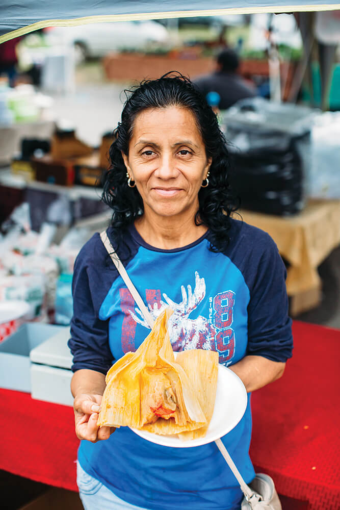 Every Thursday morning, at the Hickory American Legion Fairgrounds in Newton, a sprawling flea market, full of fold-out tables and pop-up tents, takes over. That’s where Elizabeth Perez Ańoiue has sold homemade pork and chicken tamales for three years, along with Oaxaca queso fresco, Mexican crema, and, on this morning, fresh camarones (shrimp). Bulk-size bottles of Valentino hot sauce sit beside big bags of salty, crunchy chicharrones (or duros, as they are sometimes called). Originally from Mexico, Ańoiue now lives outside of Winston-Salem and drives the hour to Newton to set up her stand before dawn.
