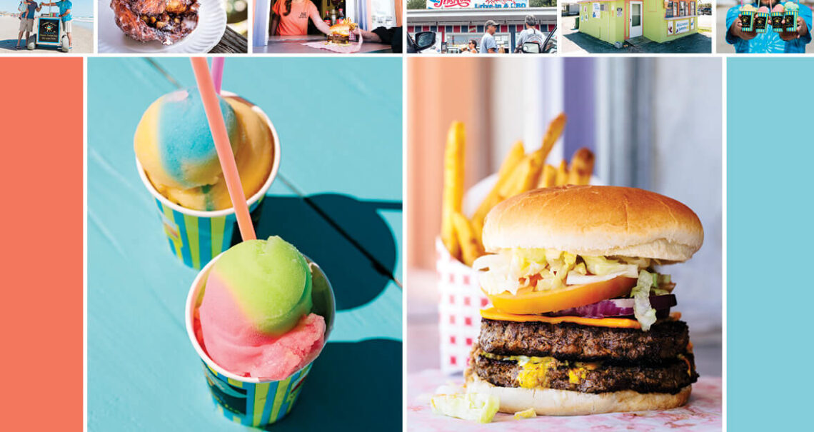 On long, hot summer days, Ocean Isle boaters and beachgoers flock to the familiar, multicolored sunshine logo like desert nomads to an oasis. Since 2004, Sunset Slush’s pushcarts have patrolled Ocean Isle Beach and Oak Island, luring customers with their wide variety of sweet and refreshing Italian ices. “We’re out there every day, sometimes walking one to two miles a day,” says Devin Sellers, who co-owns the Ocean Isle Sunset Slush with his brother, Drew, and their mom, Susie. They’re among 70 independent owners of Sunset Slush businesses, but the carts got their launch on Ocean Isle. Of his rotating selection of 10 to 12 flavors a day, Sellers says that some of the favorites are swirly blends of blue vanilla, strawberry lemonade, and the best seller, mango — what he calls “liquid gold.” All of those kids with rainbow-colored smiles just call it summer in a cup.