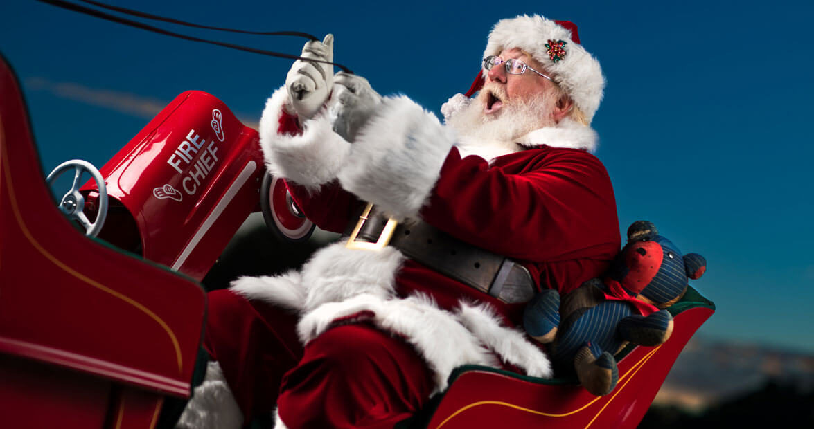 “I was driving a school bus as a substitute at Christmastime,” Jackson “Jac” Grimes recalls. “I didn’t know the kids, but I had on a red jacket and a Dollar Tree Santa hat, and the kids were asking, ‘Are you him?’ Buses being buses, children tend to be raucous and misbehave, so I said, ‘Yes, I am, and your parents sent me to check on you.’ Even the fifth graders played along.” Later that month, in 2006, he saw a Santa on a gig, and thought, “I could do a better job than that.” Grimes, then 52, took himself and his natural beard to a Santa school in Atlanta and graduated with an Advanced Master’s Degree of Santa Clausology.