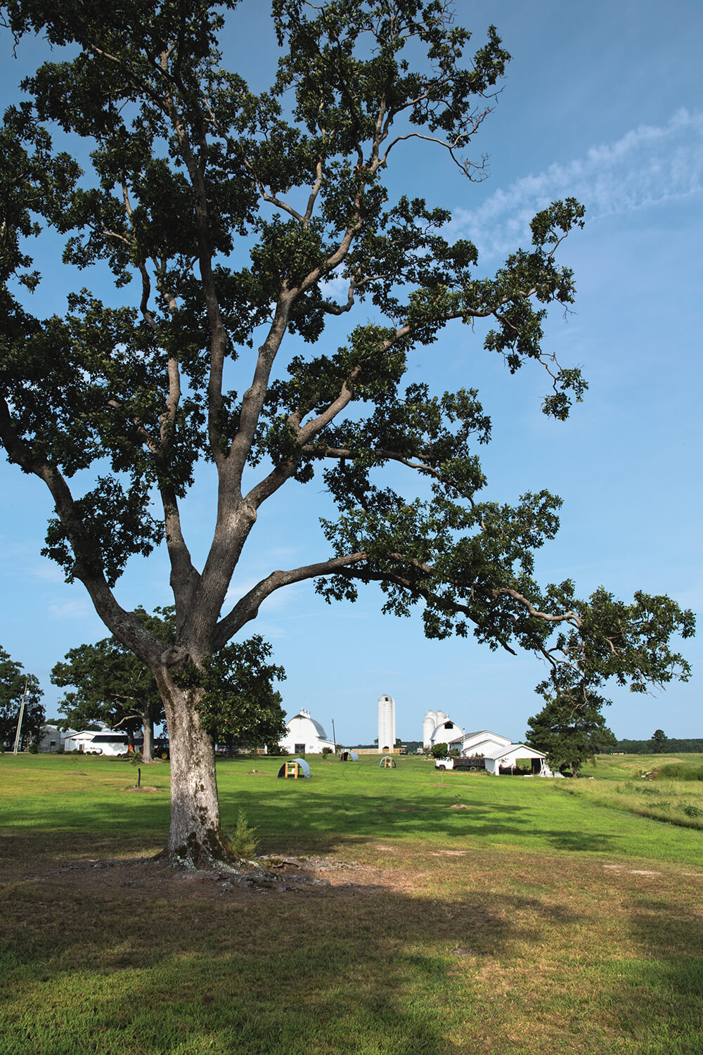 Jason, his wife, Tay, and their six kids live in Louisburg on a 1,000-acre parcel of pasture and farmland. It’s 30 minutes from Henderson, where Jason grew up, and where his parents still live. The property’s been a farm for more than 100 years, and the big white barn where cows were once milked stands silhouetted like an angel against a Carolina blue sky.