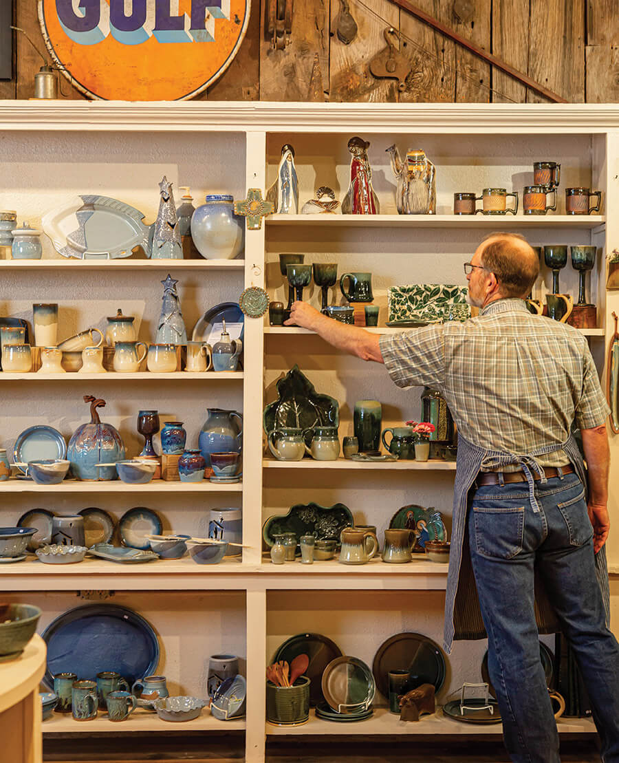 When naming his studio, John Dodson’s father was inspired by the mud dauber insects that borrowed clay from his pots, left outside to dry overnight, to build their nests. Mud Dabbers was born — and John carries on the legacy. photograph by Tim Robison