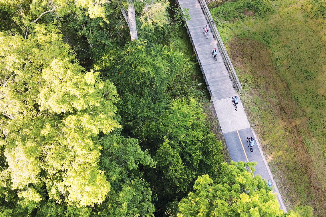 They often cycle on the Neuse River Greenway Trail in Wake County …<br><span class="photographer">photograph by Joshua Steadman</span>