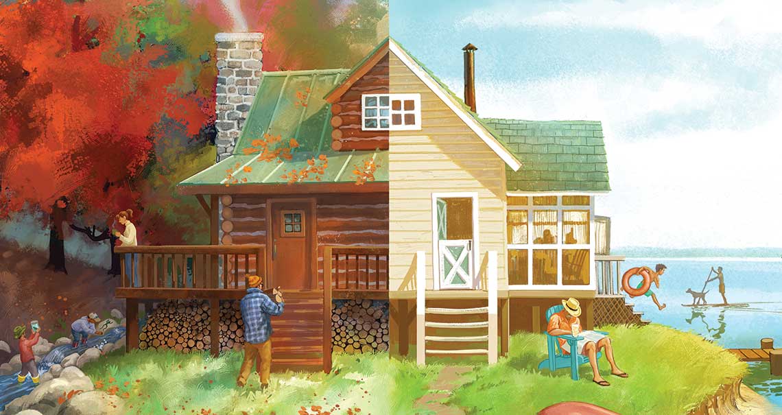 Cabins seem to recoil from civilization and request privacy, but, heck, a cottage is usually so close to its neighbor that you can see what they’re doing on their porch (or dock, or driveway), and without the pickups pulling boats and the occasional motorcycle blat-blatting by, there’d be nothing to talk about. You can imagine a hermit living peacefully alone — whittling, writing a memoir, tying flies — in a cabin, but without multiple people in them, cottages have no personality. They’re shells.