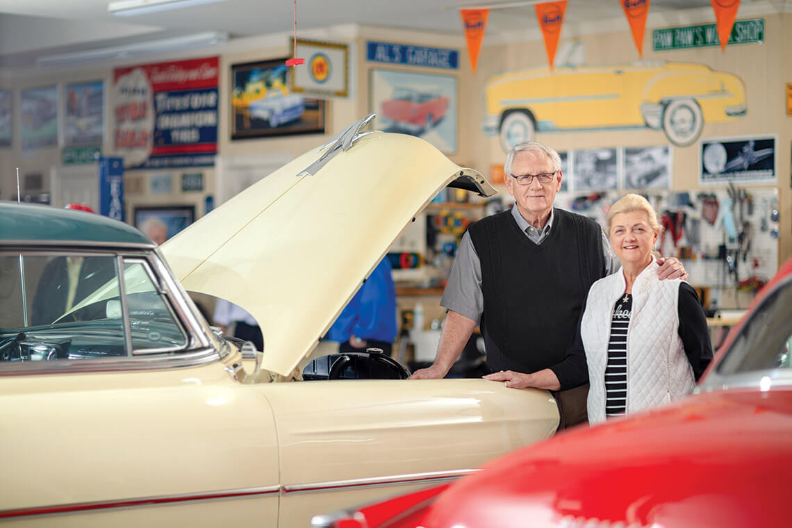 Alan and Sandra Banner have a soft spot for his yellow 1953 Bel Air Sport Coupe. It’s the first vintage car that he bought when he began collecting them at age 50. photograph by Jerry Wolford & Scott Muthersbaugh