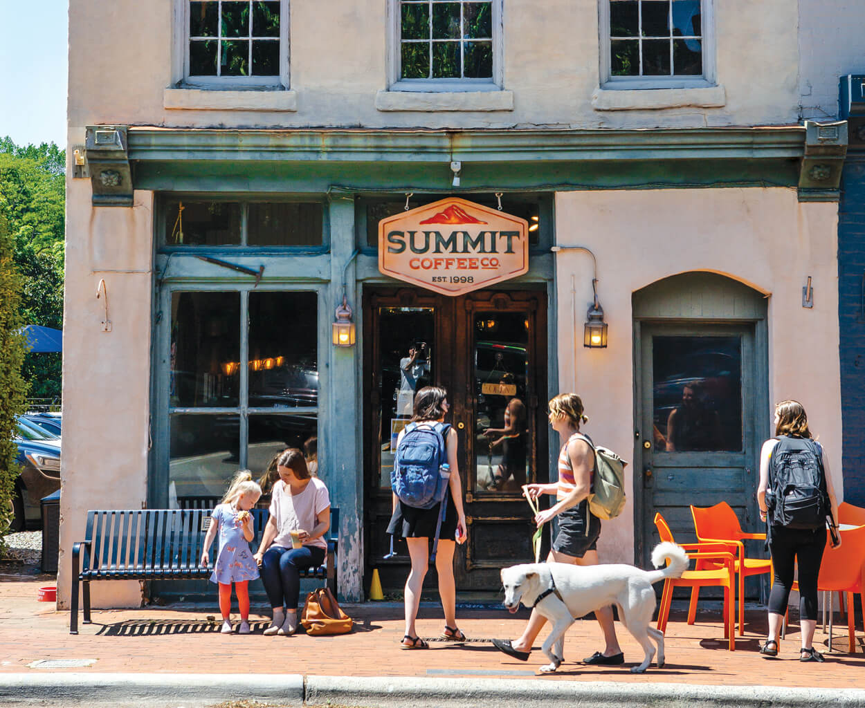 Davidson’s history is so entwined with the college located there that the two were founded the same year — 1837 — and the community itself was originally known as Davidson College. So it makes sense that town and gown remain closely tied. Summit Coffee Co. is owned by a pair of alumni, and its flagship location — or “Basecamp Cafe” — has caffeinated (and employed) students since 1998, when it opened in a 19th-century building on Main Street, across from the school. A second location — “The Outpost,” naturally — is right on campus.