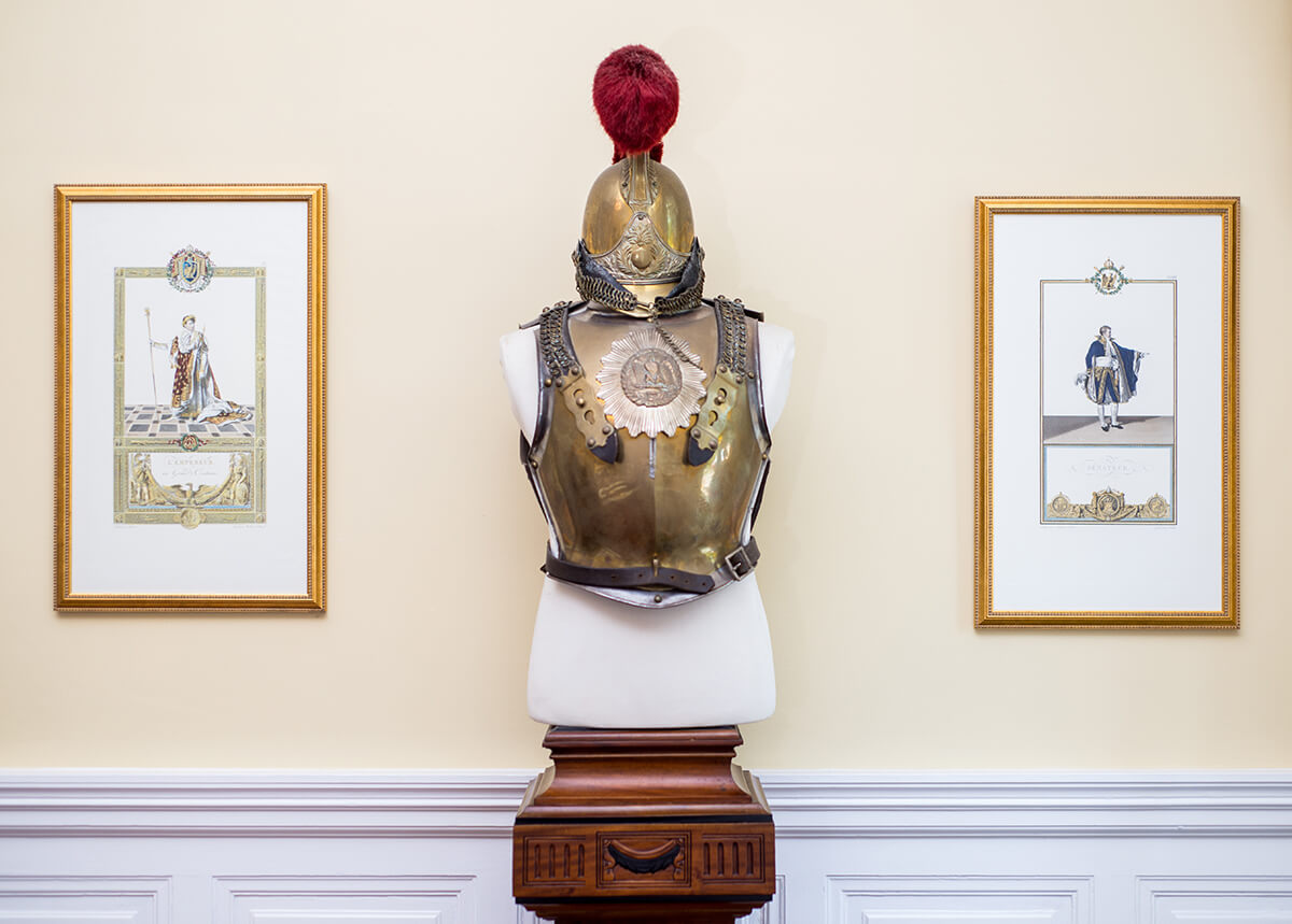 Forbes and Johnson’s love of history runs deep, so it’s no coincidence that New Bern — and the couple’s home — is steeped in it. Stately Corinthian columns that accent the front porch hint at a bygone era of craftsmanship. Inside, eclectic family heirlooms and auction finds line the walls and fill the crannies. French cavalry helmets, marble busts, and oil paintings span the centuries and speak to the mutability of time and place.