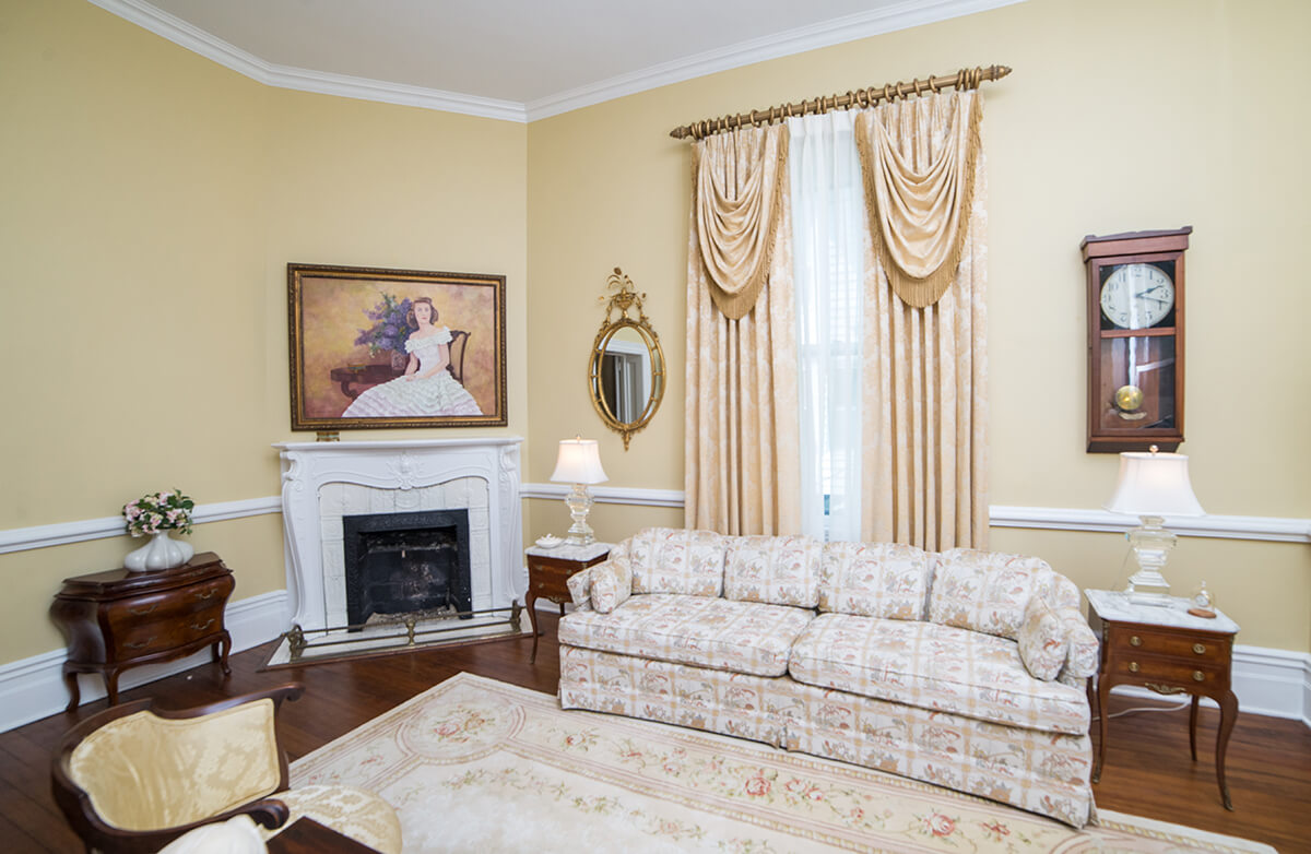 One of the Larry I. Moore House’s sitting rooms, with plenty of historical touches. photograph by Zach Frailey