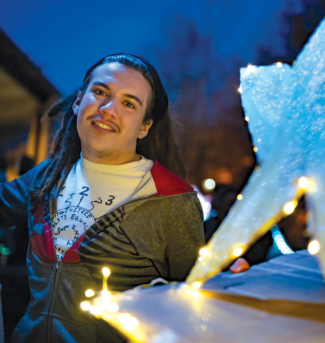 “One of the things I like about the Hillsborough Handmade Parade is the process leading up to it,” Jordy says. “The focus is on creativity and community, not about making a perfect finished product. And when everyone comes together with their creations, there is a real sense of belonging to something bigger than yourself. The winter solstice comes during one of the busiest times of the year, so I imagined something that had the same creative community aspect of the Handmade Parade but that was intentionally quiet and calm.”
