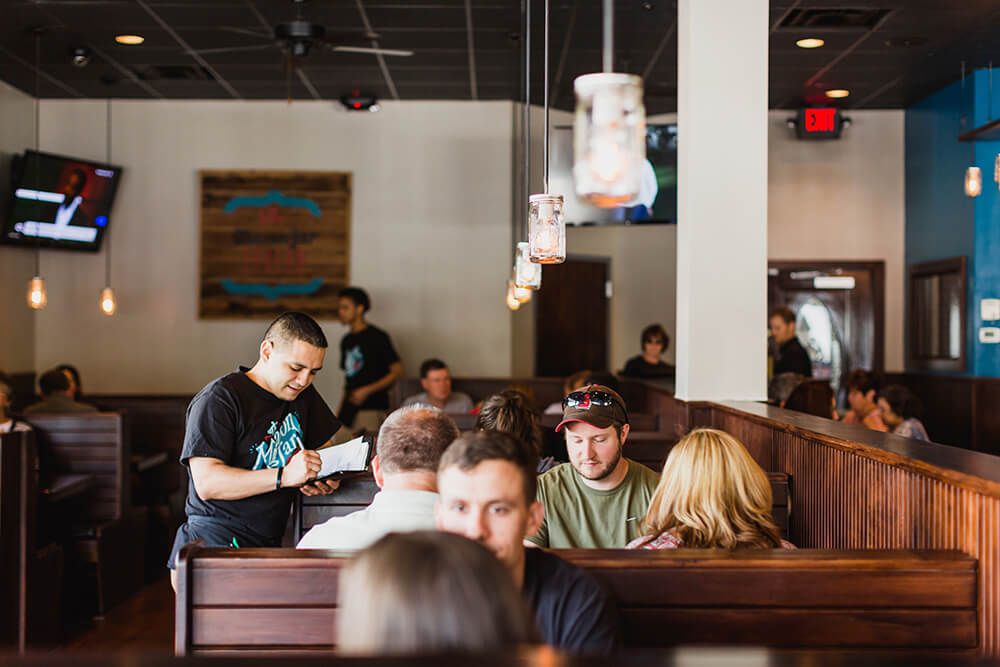 From pickled peaches to lighting bugs, a Mason jar holds the important-but-little things close. A true Southern eatery that feeds both the stomach and the soul, The Mason Jar Tavern serves the same function as its namesake. Around here, the question isn’t “Is the glass half-full or half-empty?” Instead, it’s “Can I top that off with a splash of sweet tea for you?” The buzzy dining room brims with energy, where status and stature mean little to the lunch and dinner crowds. Everybody fits in. “There are many times in my restaurant that I’m waiting to seat a table because they’re talking to their neighbor or someone they know,” manager Jaime Adams says. There’s plenty to eat, too. Chicken ‘n’ waffles. Shrimp ‘n’ grits, Mac ‘n’ cheese. The menu reads as smoothly as syrup. And let’s talk about the syrup on those chicken ‘n’ waffles for a minute: It’s the real stuff — maple — infused with a bit of bourbon and serves as a perfect partner to the homemade honey butter. Bring your meal full circle with an order of blood orange sangria or carrot cake, appropriately served in, what else, Mason jars.