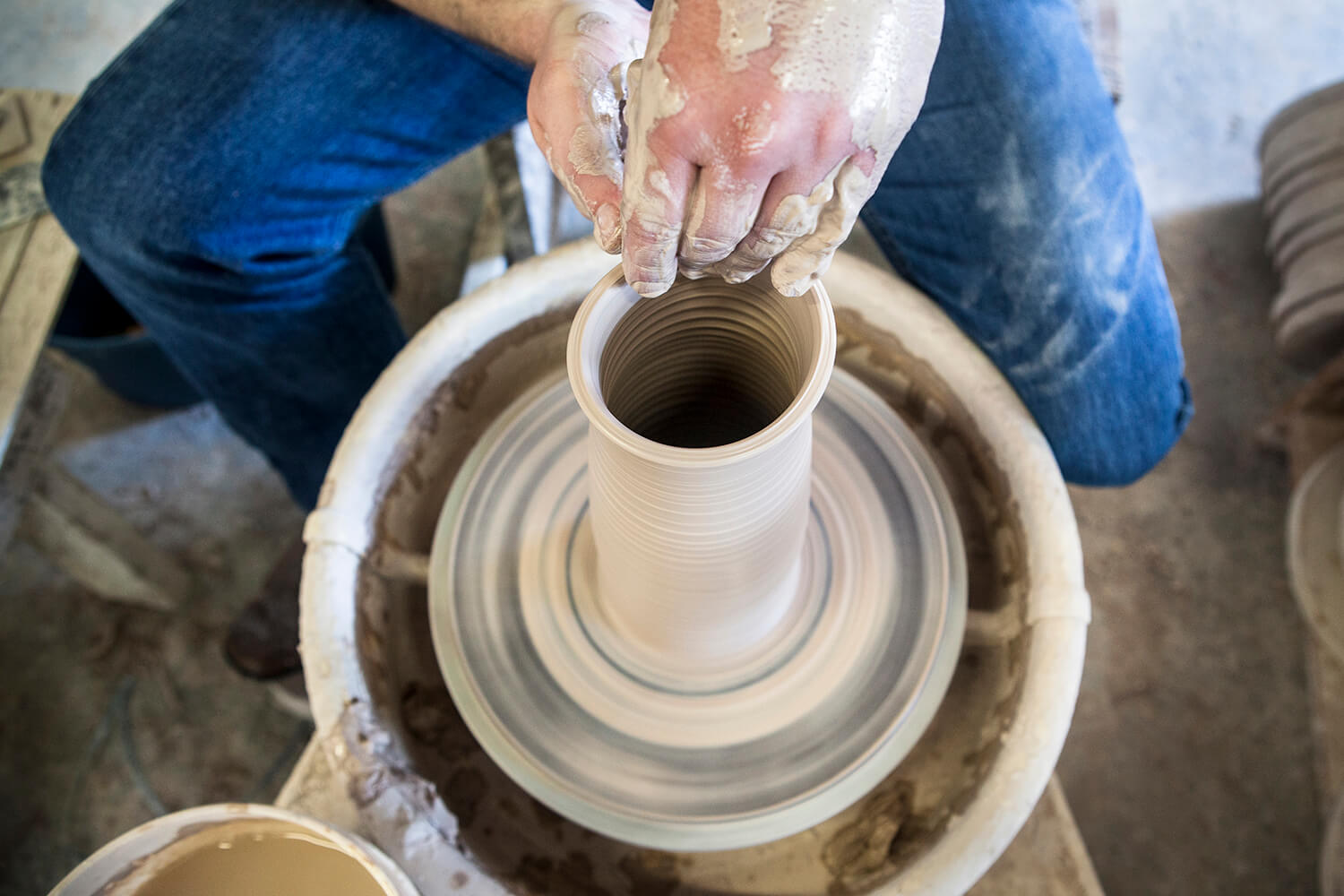 “This is probably twice the production area I had at my old studio, and the roof doesn’t leak, which is a bonus — especially since I work with clay,” he says with a laugh.