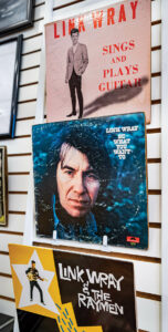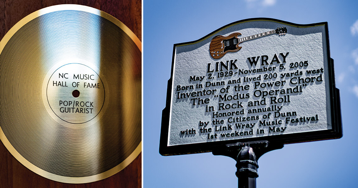 This year, on Link’s birthday, May 2, artist Scott Nurkin — whose murals of Nina Simone, John Coltrane, and other North Carolina music legends grace their respective hometowns — unveiled a wall-size painting of Link downtown, less than a mile from the historical marker that sits near a spot where the Wrays once lived. Link’s story is told inside the Dunn Area History Museum, displayed a few exhibits down from the local Indian artifacts, including Coharie pieces unearthed by museum staffer and Coharie member Christy Brewington Moore. She worked with Link’s daughter Beth, who now lives in Virginia, on the exhibit devoted to him, featuring early publicity pictures, a decorated Twin Tone electric guitar, and his posthumous Hall of Fame certificate for “Rumble.”
