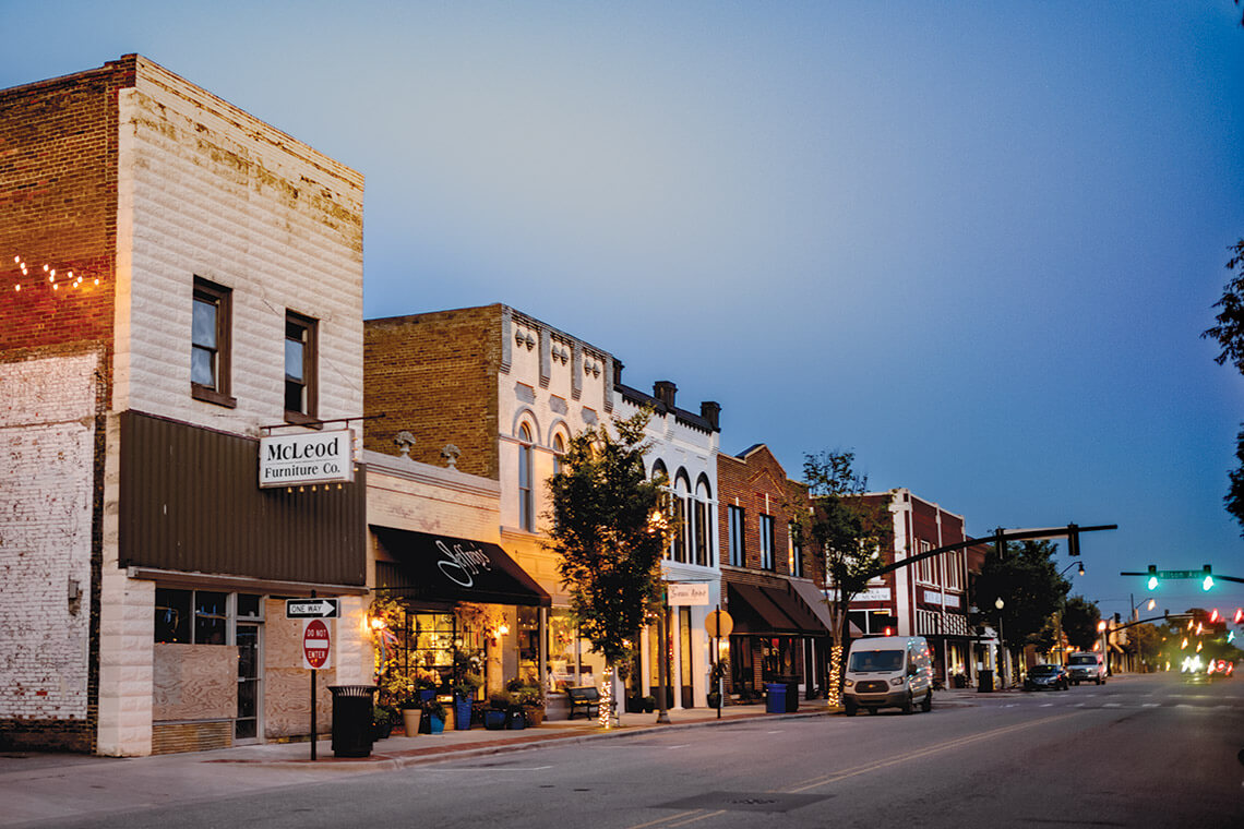 Except for the modern vehicles and shops, the look of downtown Dunn and the tiny Black River Church (below) haven’t changed much since around the time that the Wrays lived here. photograph by Charles Harris