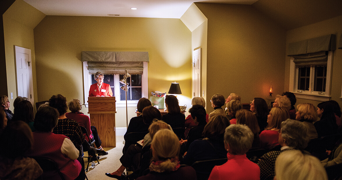 On a rainy Monday night, a literary salon in Winston-Salem is underway in Kathryn Milam’s white-brick cottage on Roslyn Road. A square table sparkles with wine glasses and candles cast a warm glow. The sideboard holds a plate of Allison McCall Joyner’s homemade fudge, made especially for this occasion. Tonight literary biographer Penelope Niven will be reading from her new book, Thornton Wilder: A Life, for 70 women who love to read.