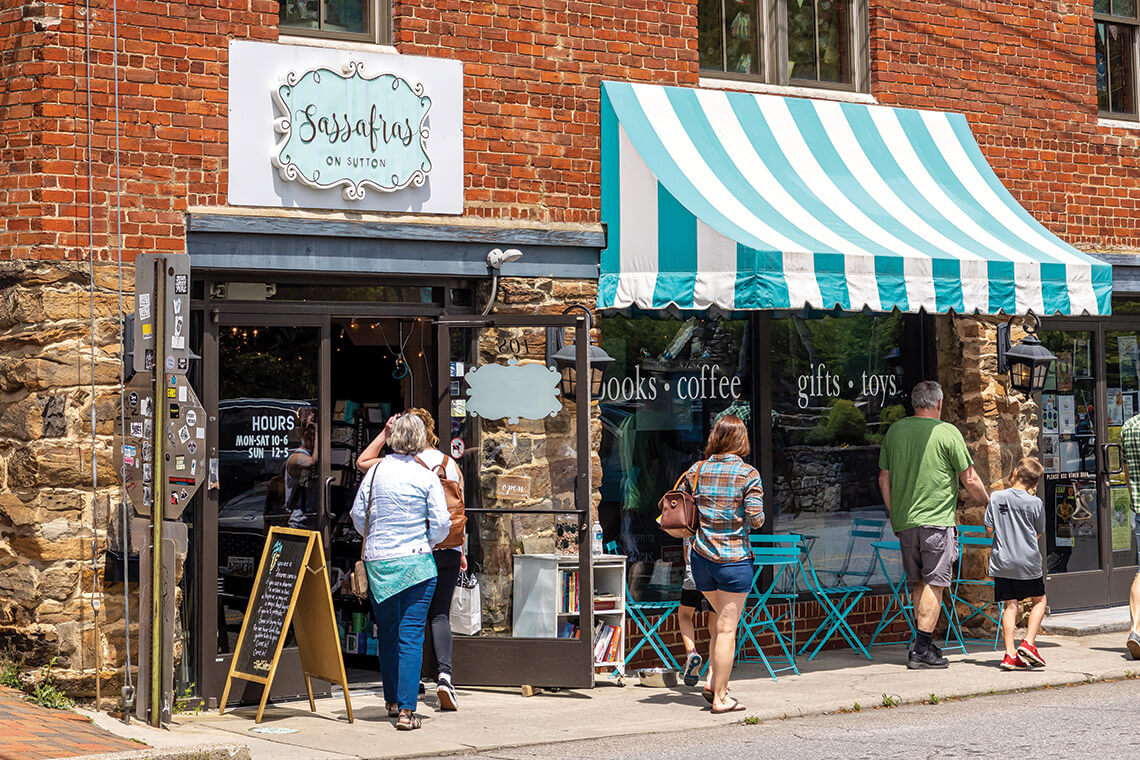 Now, the space is filled with rows of books, local gifts, book-themed goods, and a coffee bar. They’ve since expanded the shop to occupy the entire building, turning the upstairs into a toy store. Their first customers in the toy store following pandemic interruptions were three children. “They had Ziploc bags full of change that they had been saving all during lockdown,” Susanne says, “just waiting to come in.” Sassafras on Sutton has become a cherished reading nook filled with the scents of new books and ground coffee, but Susanne, a farmer at heart, says that, on occasion, she still gets a whiff of the animals that were kept here nearly 150 years ago.