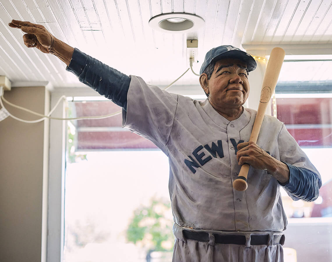 Sports collectibles rule this space, presided over by a massive Babe Ruth statue. photograph by Alex Boerner