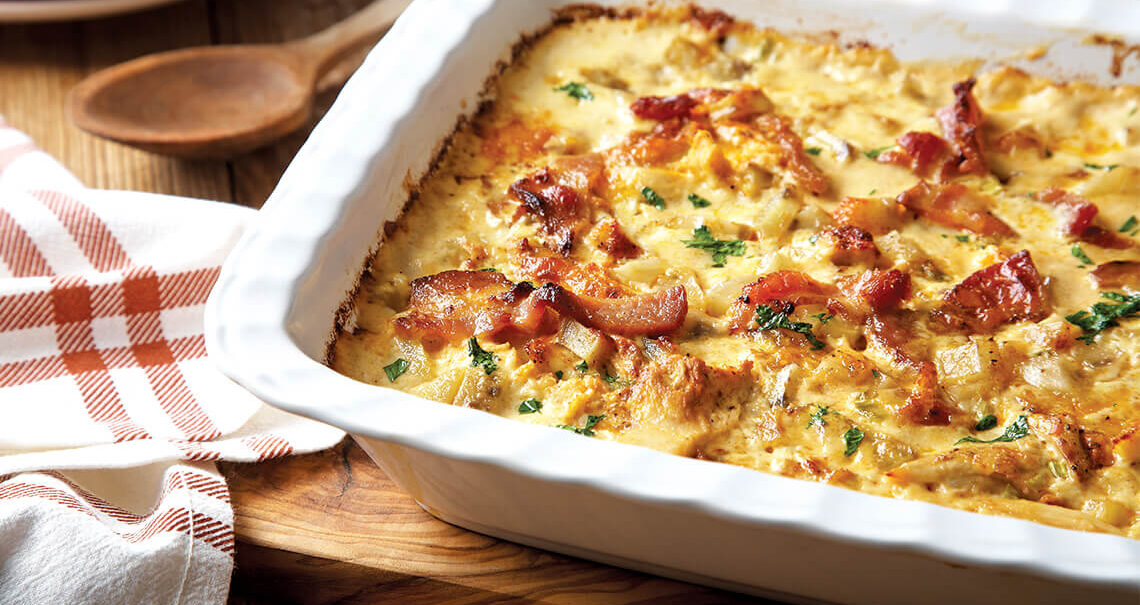 Remove foil and bake for another 30 minutes. In the last 10 minutes, sprinkle with the remaining cheese and green onions, and bake until the cheese forms a slight crust and the center is slightly jiggly. Remove from the oven and let rest for 10 minutes before serving.