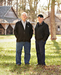 Jackie Johnson, a Silk Hope Ruritan Club member since the early 1970s, inspects a 1907 Corliss steam engine on-site. The machine, a stationary engine that once provided power to factories and mills, is a point of pride for Jackie, who was one of several people responsible for moving it to the park in 2001 and who made it run again. “His veins operate with steam, not blood,” says Johnny Johnson, watching Jackie. Johnny is also a longtime member of the community service organization that runs the park and, despite his last name, has no familial relation to Jackie.