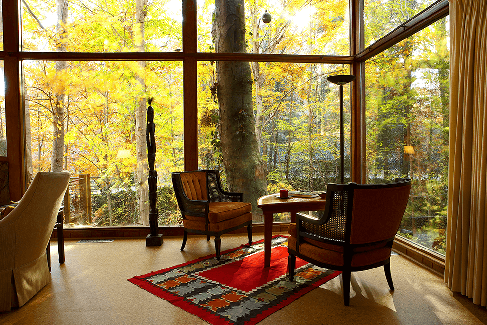 The conversation between man and nature became a conversation between man and materials as the house took shape in his mind. He could capture that sunlight through walls of windows, some canted at just the right angle to allow in light while still keeping the heat of the Southern summer sun at bay. And if he centered a bank of those windows just so, a person could sit in the living room and enjoy the structural beauty of a Japanese dogwood just outside the house. Exposed steel beams would create both the spine and the soul of the house, pulling people in and their eyes upward, creating a sense of openness. The outside would come in as Carolina fieldstone turned into walls and floors.