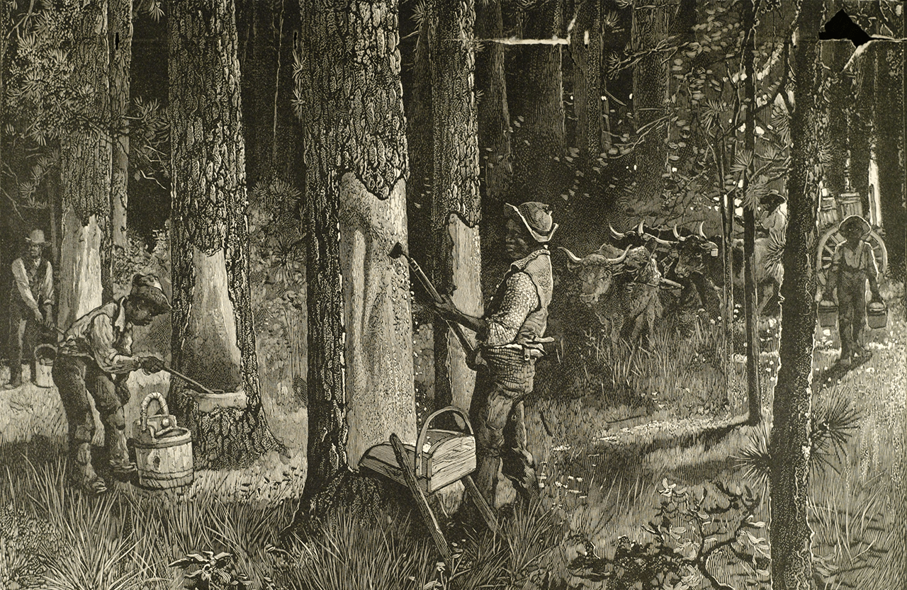 Throughout the 1800s, North Carolina accounted for up to 96 percent of the nation’s “naval stores,” relying heavily on slave laborers, according to Timothy Prizer’s 2009 thesis “Pining for Turpentine.” The longleaf also yielded the sturdy beams that braced mills and warehouses, some of which still stand today.