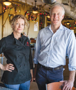 The couple is having coffee at Amos’s bar on the morning after a big dinner rush, Hallock in a black T-shirt and baseball cap turned backward, and Sandy dressed beach casual in white slacks and a polo shirt. Hallock lets out a quiet chuckle, still somewhat surprised by the success that she and Sandy have enjoyed in this little spot so close to her childhood playground. It wasn’t supposed to be this way. She was supposed to be an attorney.