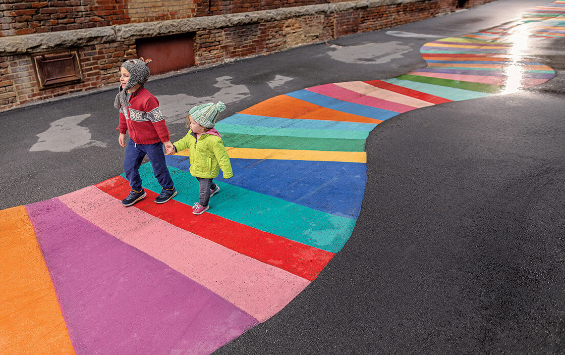 Four-year-old Ari Harmelin and his 1½-year-old sister, Lucy, walk hand in hand on the colorful path. photograph by Jerry Wolford & Scott Muthersbaugh