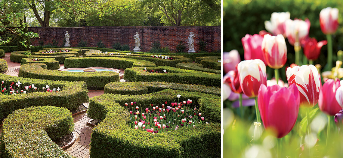 The Maude Moore Latham Garden is a tribute to one of The Dreamers, five local women who helped bring Tryon Palace back to life. In 1944, Latham established a trust for the restoration of the colonial mansion, and was later appointed chairwoman of the Tryon Palace Commission. She died in 1951, just a year before renovations began. A lifelong member of the Garden Club of North Carolina, Latham was memorialized in a formal garden at the palace, where carefully planned paths wind through clipped hedges and beds of spring tulips, summer annuals, and fall chrysanthemums, planted each year by gardeners who share her passion for this place.
