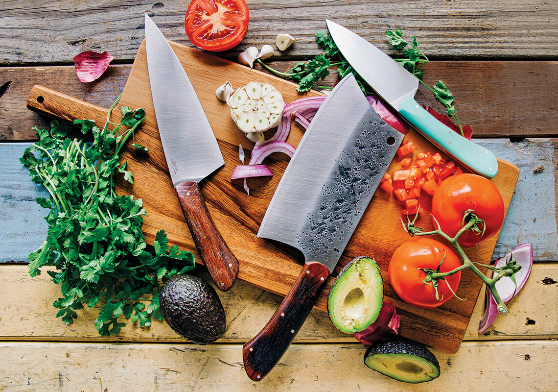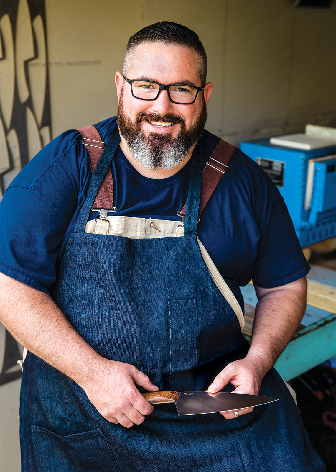 As a former chef, Nichols knows that reliable kitchen tools are just as important as quality ingredients. His Battleship knives are thoughtfully constructed and infused with history. photograph by Matt Ray Photography