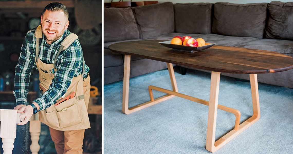 A passion for woodworking led Donny Hinds to turn his hobby into a career, crafting showstopping pieces like his Modern Walnut & Maple Coffee Table, a finalist in the 2022 Made in NC Awards. photograph by Maria West Photography