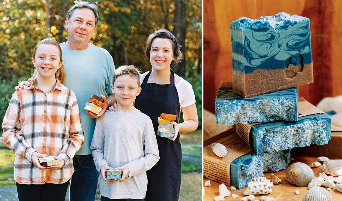 For Jennifer Evarts, there’s a special kind of beauty that can only be found along the North Carolina coast. Hoping to capture the beach experience in a soap, the owner of The Living Soaperie combined the scents of lemongrass, seaweed, and sea salt with rainwater that she collected. “The beach is so central to life in North Carolina,” Evarts says. “We love being able to share that experience with people through our soap, and doing so in a sustainable way.” The soap’s natural ingredients, including coconut oil, shea butter, and castor oil, create a multisensory experience, from its scent to its smooth texture and two-toned blue swirls speckled with sand. The feeling you get with each use, Evarts says, is “like closing your eyes and being on an actual beach.”
