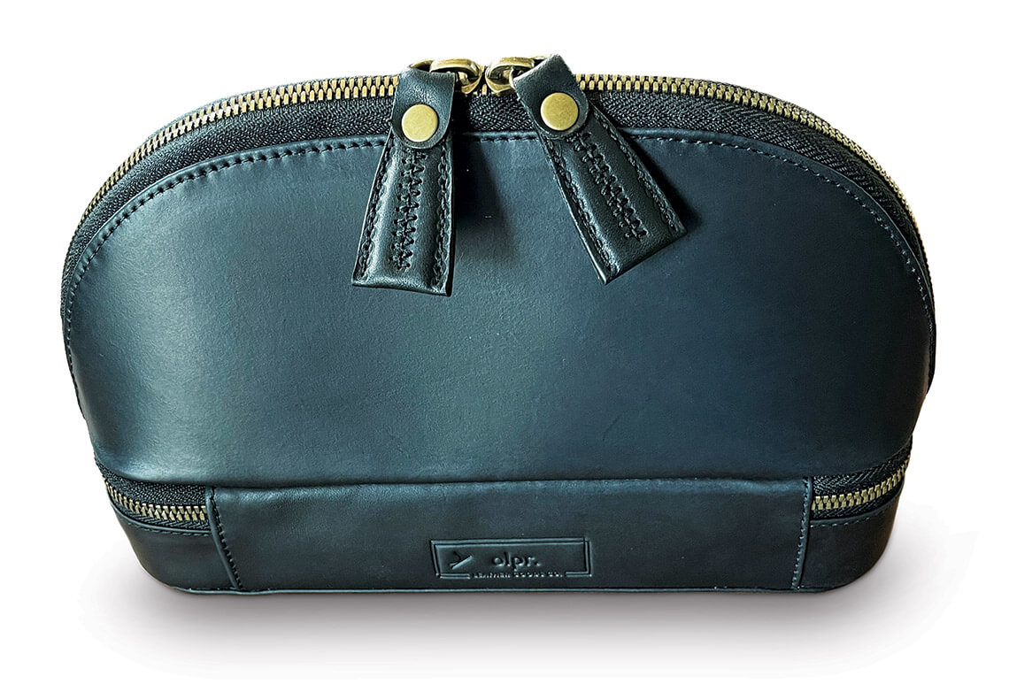 Julia Prannyk spent days sketching, studying leather grains, and thumbing through taupe, tan, and black color swatches for olpr.’s latest accessory: a travel jewelry organizer. To bring her vision to life, she needed the skilled craftsmanship of her younger brother, Viktor Oleksyn, olpr.’s cofounder and master tailor. “I wanted to create something that not only lasted physically but also stood the test of style,” Prannyk says. “And whenever I have an idea, my brother delivers.” Designed with black Milwaukee leather, gold zippers, a soft suede interior, and multiple small box compartments, the organizer fits perfectly inside a tote bag, backpack, or carry-on suitcase, Prannyk says. “I use it even when I’m not traveling.”