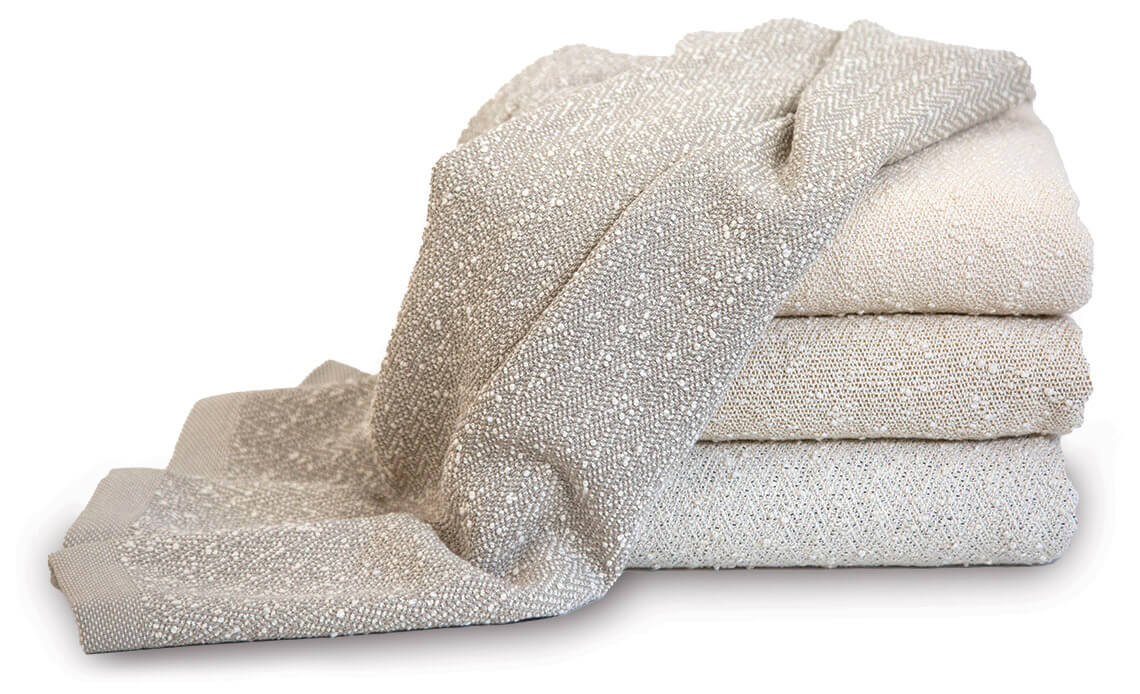 All it took to persuade Gina B. Wicker to switch from a corporate career in textiles to handweaving luxurious fibers was a little inspiration and a lifetime love that began as a child growing up in Cooleemee. “My mom’s entire family were tenant farmers in our little mill town,” she says. “Growing up with that lifelong connection to textiles is what started my passion and landed me where I am today.” In 2019, she bought weaving equipment from a defunct textile company and moved it to a small studio space in Burlington. There, she meticulously weaves textiles using a mix of organic, reclaimed, and sustainably produced fibers and yarns. Items in her Loop Throw collection — made to order in neutral color combinations named Putty, Nature, Golddust, and Speckle — are accented by a loopy cotton bouclé yarn for beauty and for texture as cozy as a sweater. “I love how a very simple change in color can take this pattern in a totally different direction,” Wicker says. “With Speckle, black cotton yarn is incorporated in the bouclé, so it adds these little flecks of black that create a salt-and-pepper look. The subtle chevron accents stand out when we use a different color like Golddust.” Since opening Native Spun, Wicker has continued to be inspired by the rich artistic culture for which the North Carolina textile industry is known and loved.
